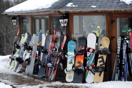 Snovborda un slēpošanas inventārs slēpošanas kompleksā "Žagarkalns".