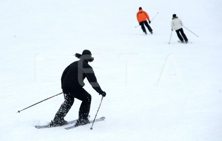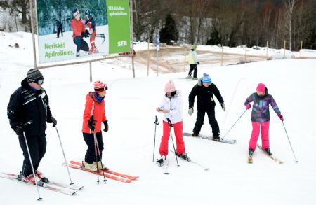Slēpotāji slēpošanas kompleksā "Žagarkalns".