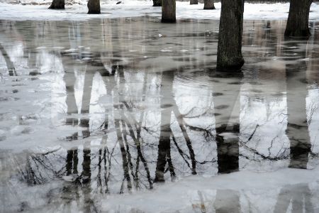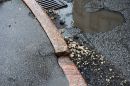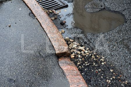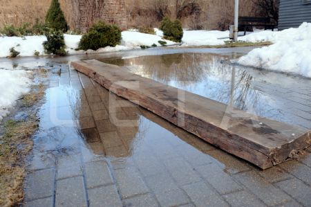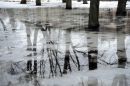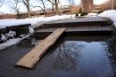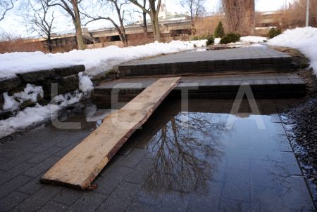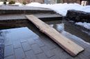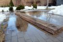 Laipa pār ūdens peļķi Rīgas pils pagalmā.