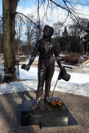 Piemineklis dzejniekam Aleksandram Puškinam Kronvalda parkā.