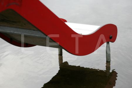 Slidkalniņš bērnu rotaļu laukumā applūstošajā pilsētas teritorijā ...