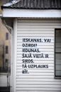 Uzraksts uz ēkas sienas Antonijas ielā.