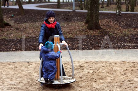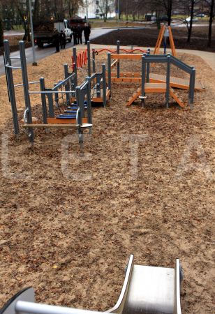 Bērnu laukums labiekārtotajā Pļavnieku bērzu birzī.