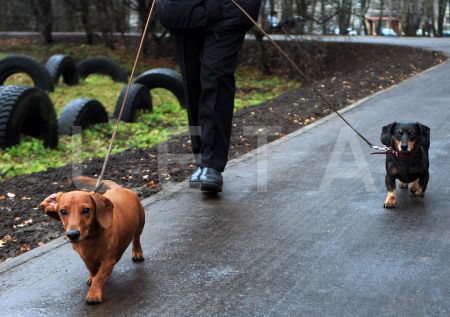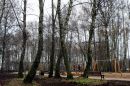 Suņi labiekārtotajā Pļavnieku bērzu birzī.