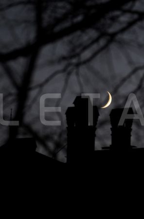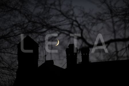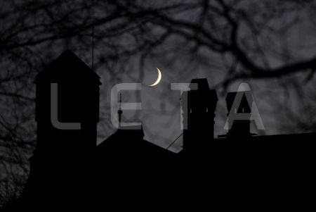 Mēness virs Latvijas Mākslas akadēmijas ēkas.