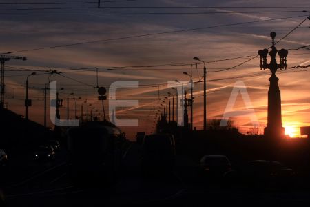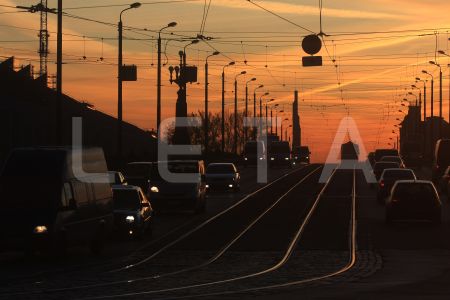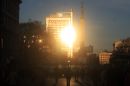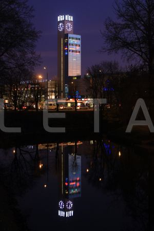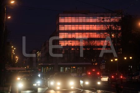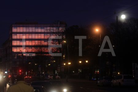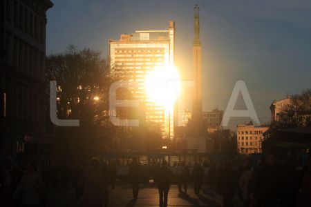 Saules atspulgs viesnīcas "Reval Hotel Latvia" logos un Brīvības ...
