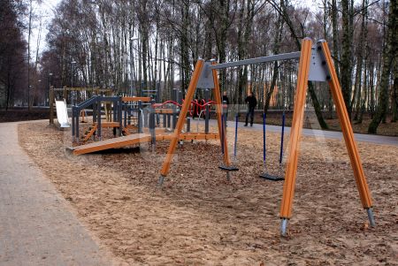Bērnu laukums labiekārtotajā Pļavnieku bērzu birzī.