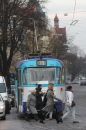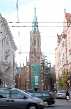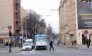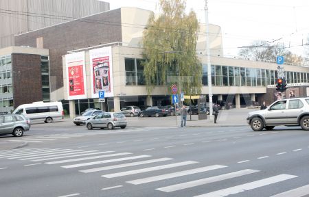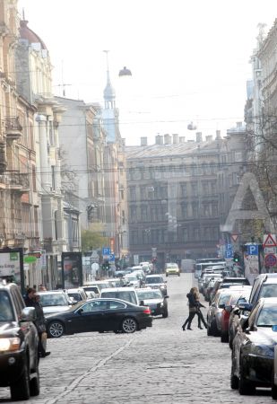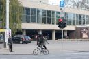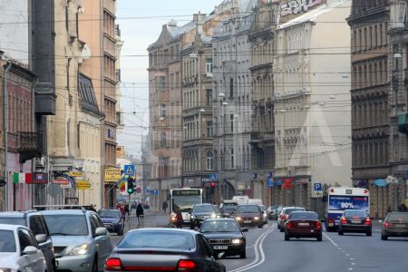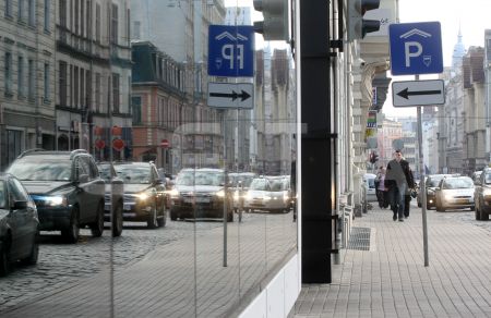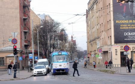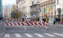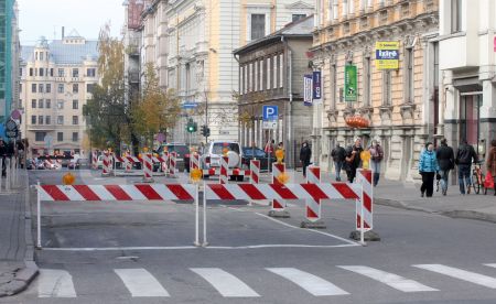 Ar barjerām norobežota Lāčplēsa ielas braucamā daļa.