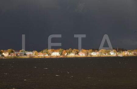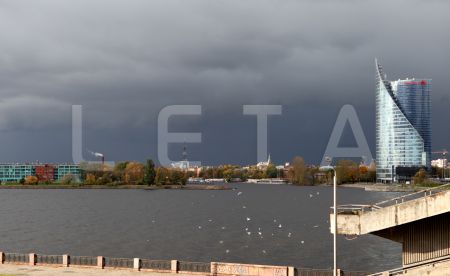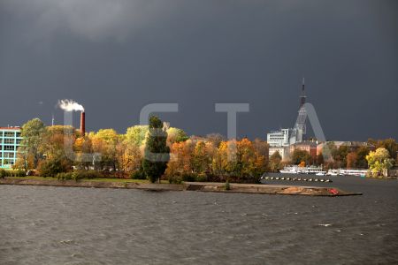 Skats uz Daugavmalu Ķīpsalā pirms negaisa.