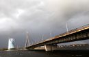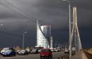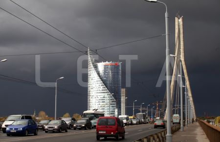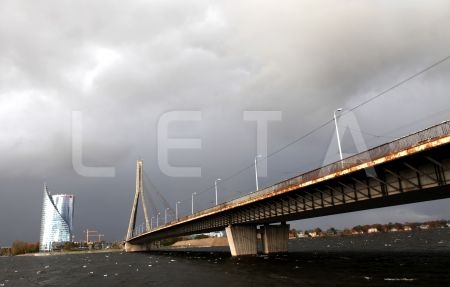 Debesis pirms negaisa virs Pārdaugavas un Vanšu tilta.