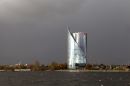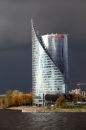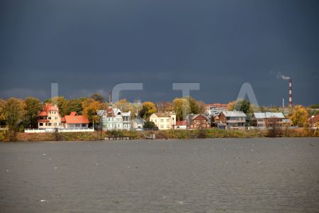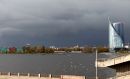 Daugava un debesis virs Pārdaugavas pirms negaisa.