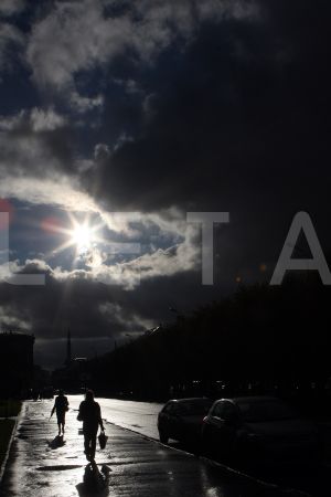Debesis pirms negaisa virs Pārdaugavas un Saules akmens.