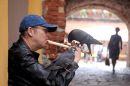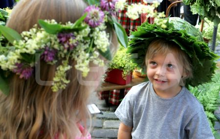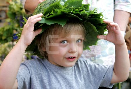 Zēns ar vainagu tradicionālajā Zāļu tirgū Doma laukumā.
