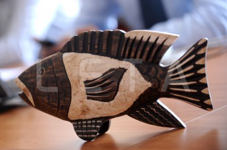 Zivs figūra pasākumā, kurā prezentē makšķernieku karšu tirdzniecību ...