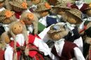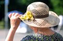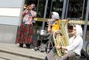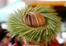 Sieviete ar vārpu vainagu tradicionālajā Zāļu tirgū Doma laukumā.