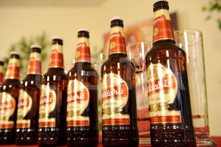 AS "Aldaris" pudele un glāze Latvijā pirmajās alus saliešanas ...