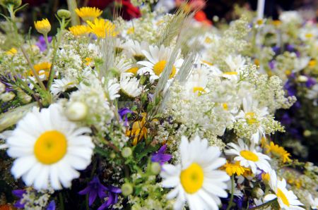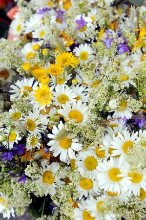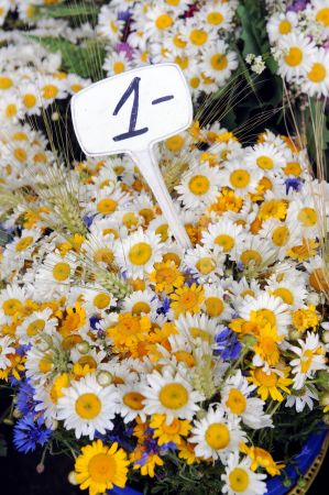 Jāņu vainagi Saktas puķu tirdziņā.