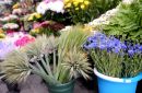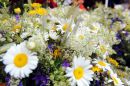 Jāņu zāļu un ziedu tirdzniecība Saktas puķu tirdziņā.