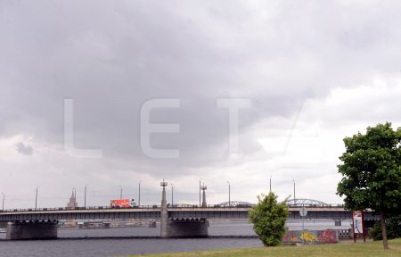 Akmens tilts un lietus mākoņi.