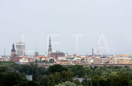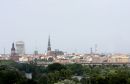 Rīgas panorāma ar lietus mākoņiem.