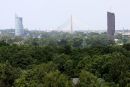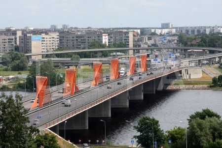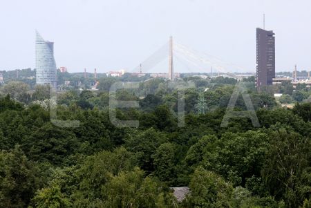 Skats uz "SEB bankas" ēku, Vanšu tiltu un Latvijas Televīzijas ēku.