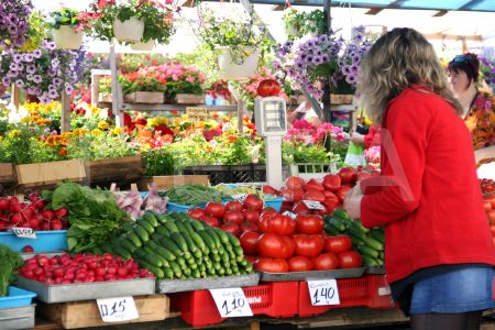 Dārzeņu un puķu stādu tirdzniecība Rīgas Centrāltirgū.