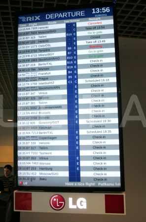 Izlidošanas tablo Starptautiskās lidostas "Rīga" termināļa jaunajā ...