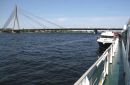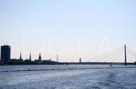 Skats uz kuģīšu piestātni un Vanšu tiltu pār Daugavu.