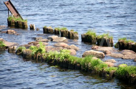 Koka pāļu un akmeņu viļņlauzis Daugavā pie Ķīpsalas.