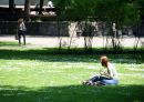 Jaunieši atpūšas Vērmanes dārza zālienā.