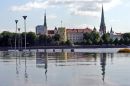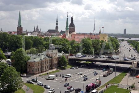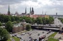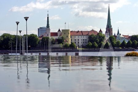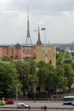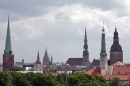 Skats uz Rīgas pili un baznīcu torņiem no "Swedbank" ēkas.