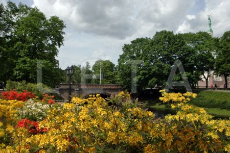 Ziedoši rododendri pilsētas kanāla apstādījumos pie Latvijas ...