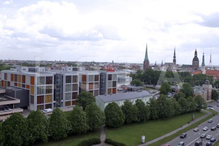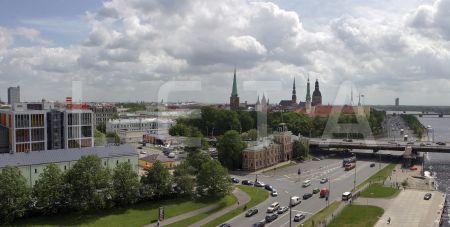 Skats uz tirdzniecības centru "Olimpija" no "Swedbank" ēkas.