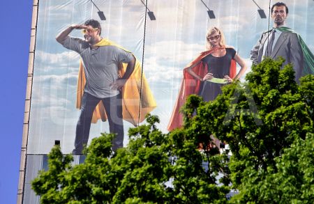 "Citadeles bankas" logo uz ēkas jumta Republikas laukumā.
