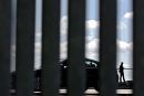 Sieviete aplūko zvanus Rīgas Kristus Piedzimšanas katedrālē.
