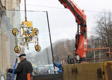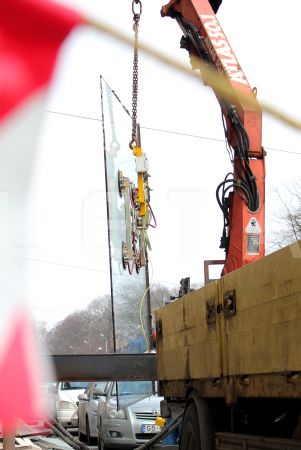 Skatloga stikla izņemšana Aspazijas bulvārī.