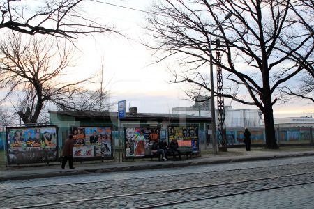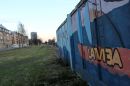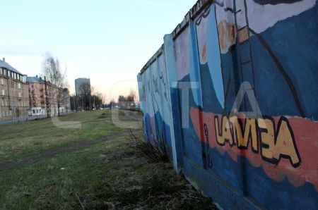 Sienas zīmējums ar uzrakstu "Latvija" Eksporta ielā.