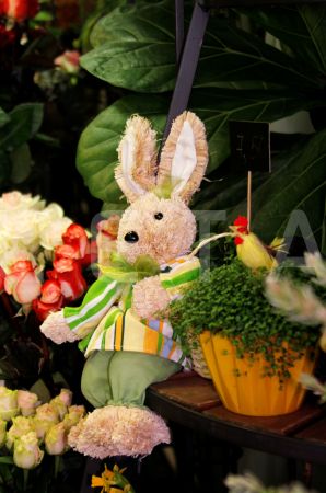 Dekoratīvs trusis no salmiem veikalā "Maxima".