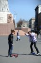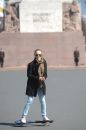 Meitene ar veivbordu pie Brīvības pieminekļa.