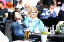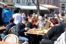 Cilvēki vasaras kafejnīcā Līvu laukumā.