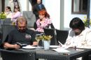 Sievietes vasaras kafejnīcā Līvu laukumā.