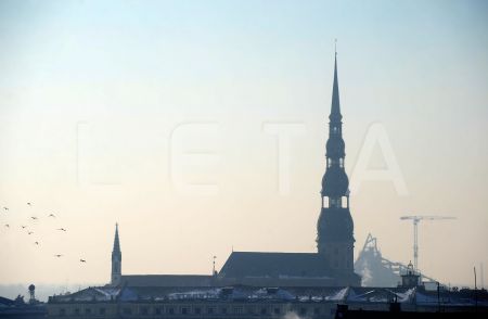 Skats uz Pēterbaznīcu no tirdzniecības centra "Galleria Riga" jumta.