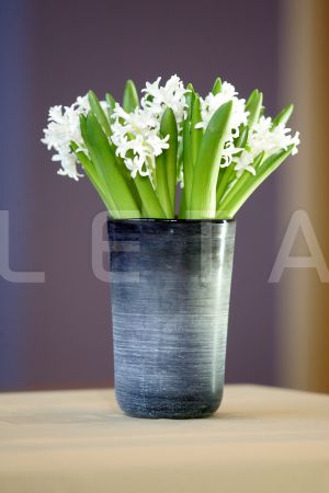 Vāze ar hiacintēm Ādažu novada domes priekšsēdētāja preses konferencē.