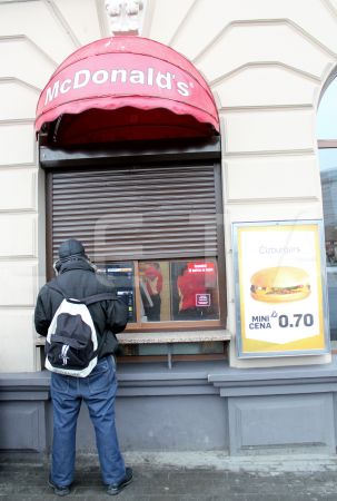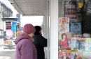 Sievietes pie "Narvesen" kioska Merķeļa ielā.