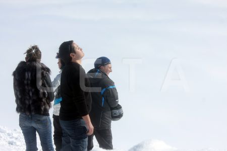Cilvēki kalnu slēpošanas kūrortā ''Gudauri'' Gruzijā.