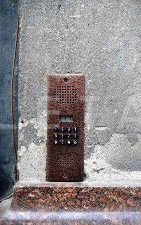 Sarunu ierīce pie ārdurvīm (domofons) A.Čaka ielā.