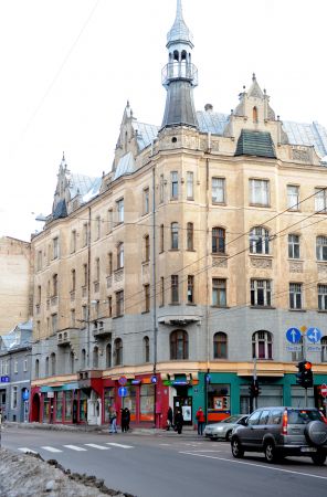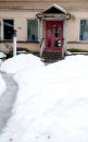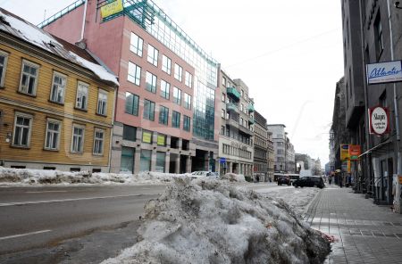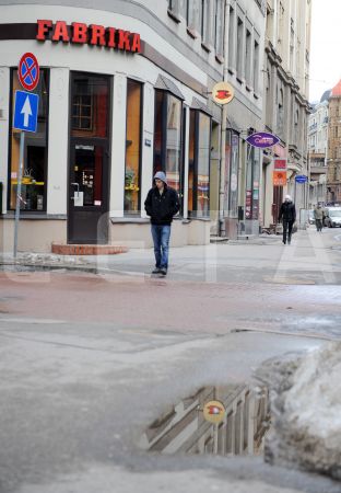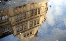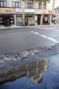 Mājas atspulgs ūdens peļķē A.čaka ielā.