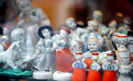 Porcelāna lellītes antikvariāta skatlogā A.Čaka ielā.