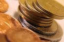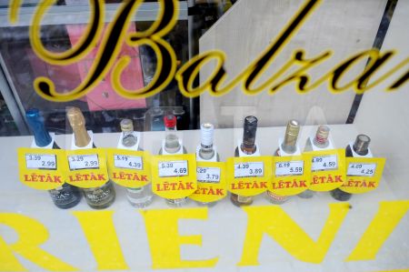 Alkohola pudeles veikala "Latvijas balzama" skatlogā.