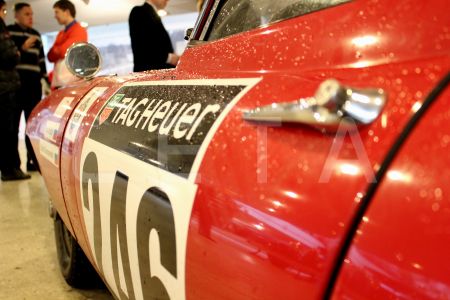 Restaurētā "Jaguar E-type" vēsturiskā automašīna, kas startējusi ...